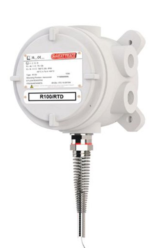 Fixés par ruban adhésif aluminium, ils permettent de contrôler la température de surface de tuyauteries ou de réservoirs et assurent le pilotage direct d’un câble chauffant à partir d’un câble d’alimentation. Intégrés dans un boîtier de type R130 en aluminium moulé haute qualité, peint RAL 7035, ils sont adaptés aux environnements sûrs ainsi qu’aux zones dangereuses (Zone 1 et Zone 2, Gaz IIA/IIB/IIC).