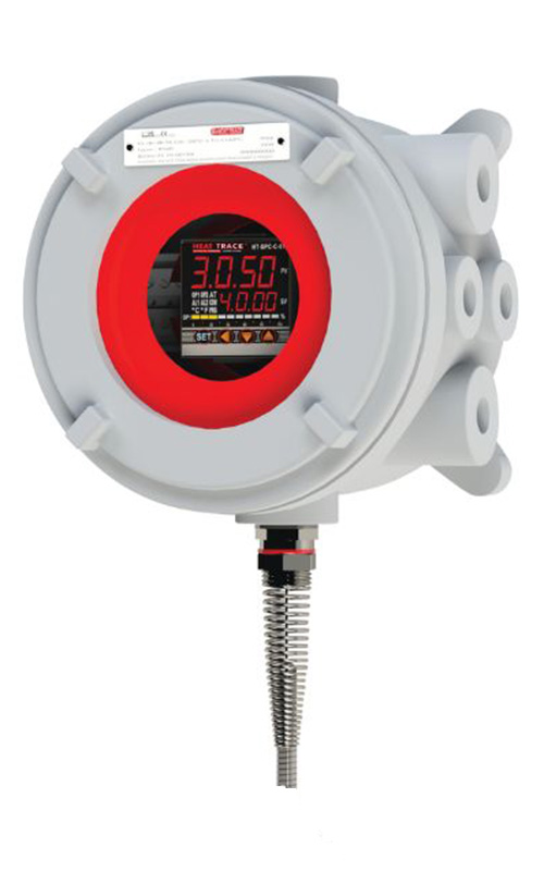 Doté d’une fenêtre en verre, il permet de visualiser la température actuelle, d’ajuster la consigne et de contrôler l’état marche/arrêt du traçage électrique. Installé dans un boîtier R160 en aluminium moulé haute qualité peint RAL 7035, il peut être utilisé en zones sûres comme en zones dangereuses (Zone 1 et 2, Gaz IIA/IIB/IIC).