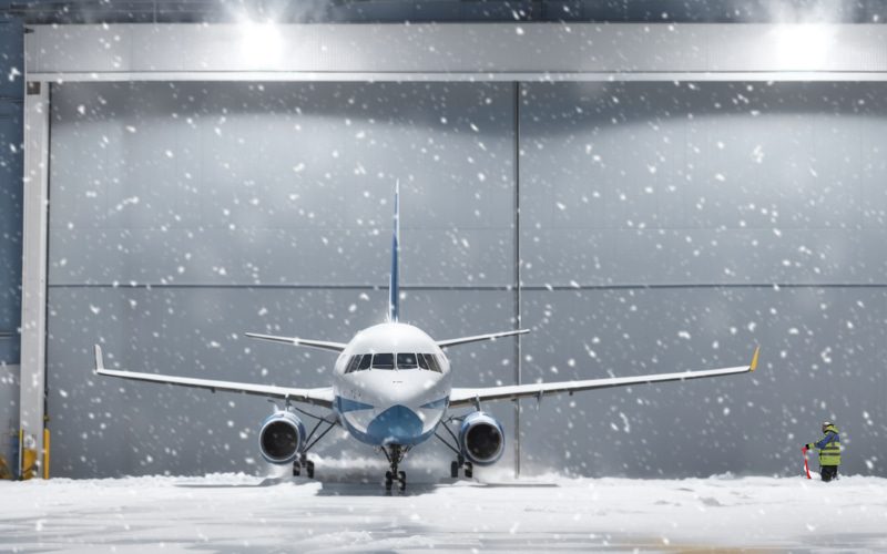 Exemple d’application : Dans les aéroports ou bases situés en climat froid, les rails inférieurs des portes de hangar doivent rester fonctionnels pour permettre l’ouverture et la fermeture sécurisées des portes.